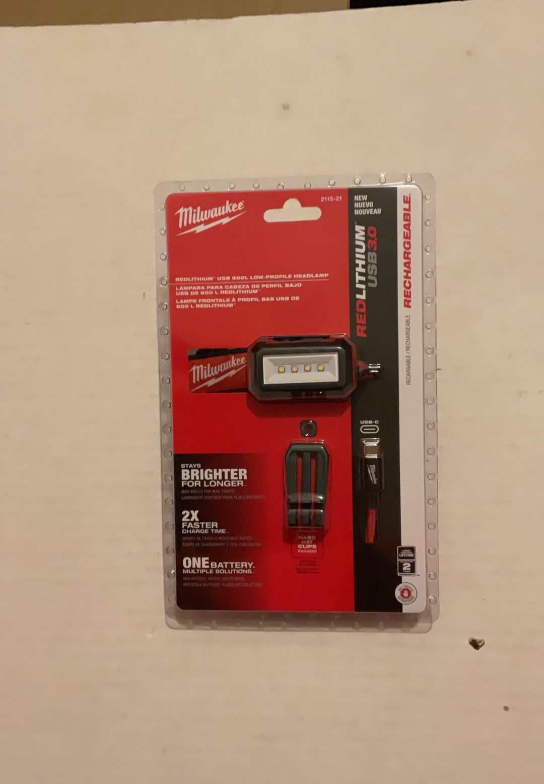 Brand New Milwaukee Red Lithium USB 600 Lumens Low Profile Head Lamp. Nueva Lámpara para Cabeza Milwaukee USB 600 Lumens Red Lithium. Hablo Español. 60 Firm on Price. 60 Firme en Precio.