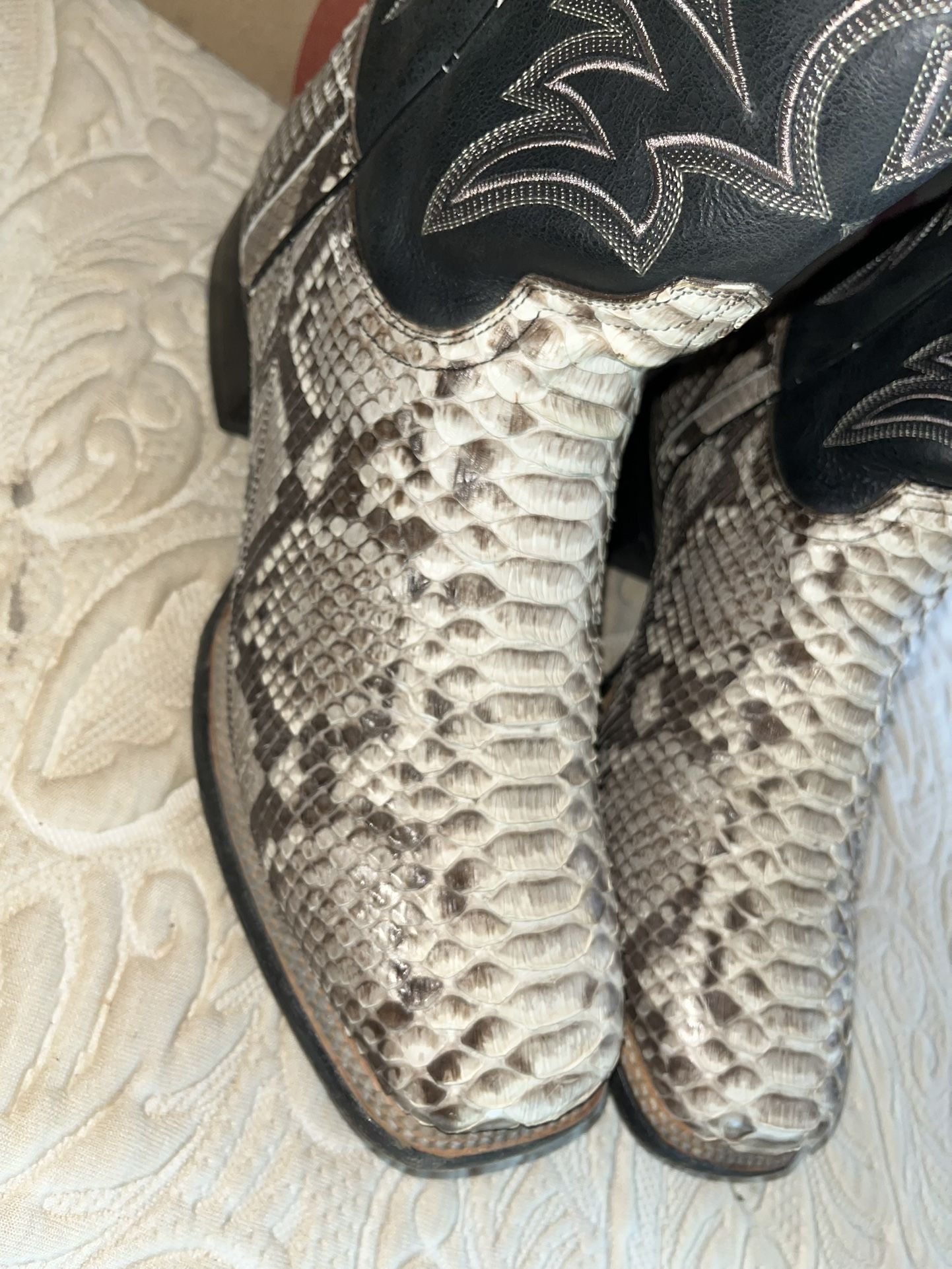 Really well taken care boots, real python, python skin not damaged at all, bottom has a little wear.