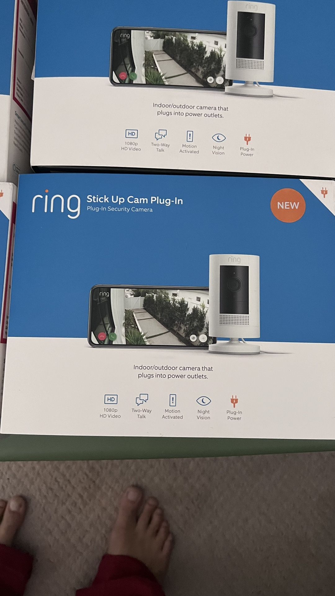 We moved out of our house and into an apartment and no longer have use for it. Comes with Ring Doorbell 5 stick up cam plug ins ( 5 cameras you can just plug into a wall) Extra battery for door bell camera Door bell speaker (plug into wall) 1 spotlight camera And one extra teal colored interchangeable ring cover
