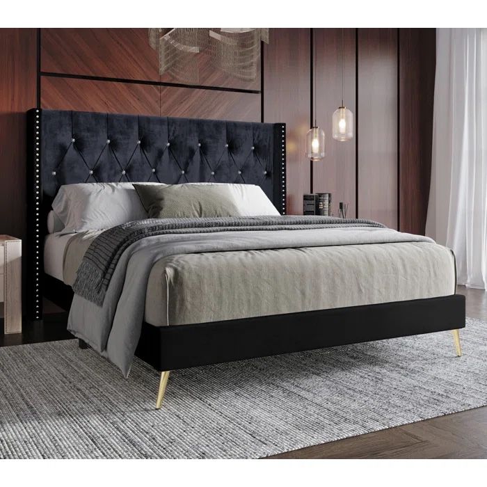 So tears or scratch in the fabric! Only 6 months old Black king size bed frame solid wood
