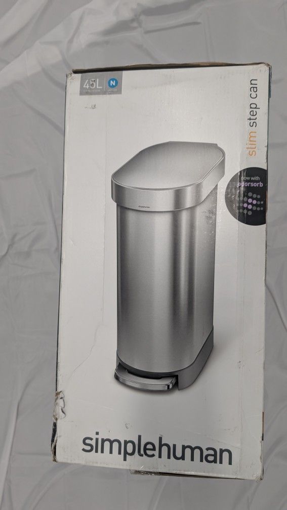 Selling a Simplehuman 45L Slim Liner Rim Step Kitchen Trash Can in brushed stainless steel with gray plastic lid. This is a high-quality, sleek trash can that fits perfectly in tight spaces. ποΈ Details: 45-liter capacity Slim, space-saving design Step pedal (hands-free) Liner rim keeps bags hidden and in place Durable stainless steel finish Grey plastic lid π° Retail price: $100 π΅ Asking: $45 Clean, modern look β perfect for kitchens, apartments, or offices. Pickup only. Cash or Venmo.
