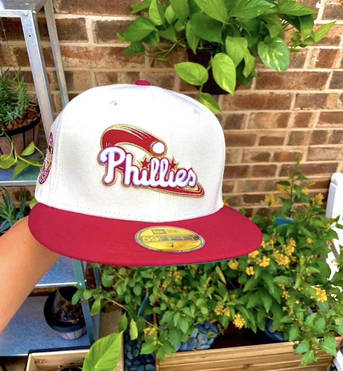 Exclusive New Era 59Fifty Rolling Papers Philadelphia Phillies Veterans Stadium Patch Word Hat π - White, Cardinal MUST PICKUP