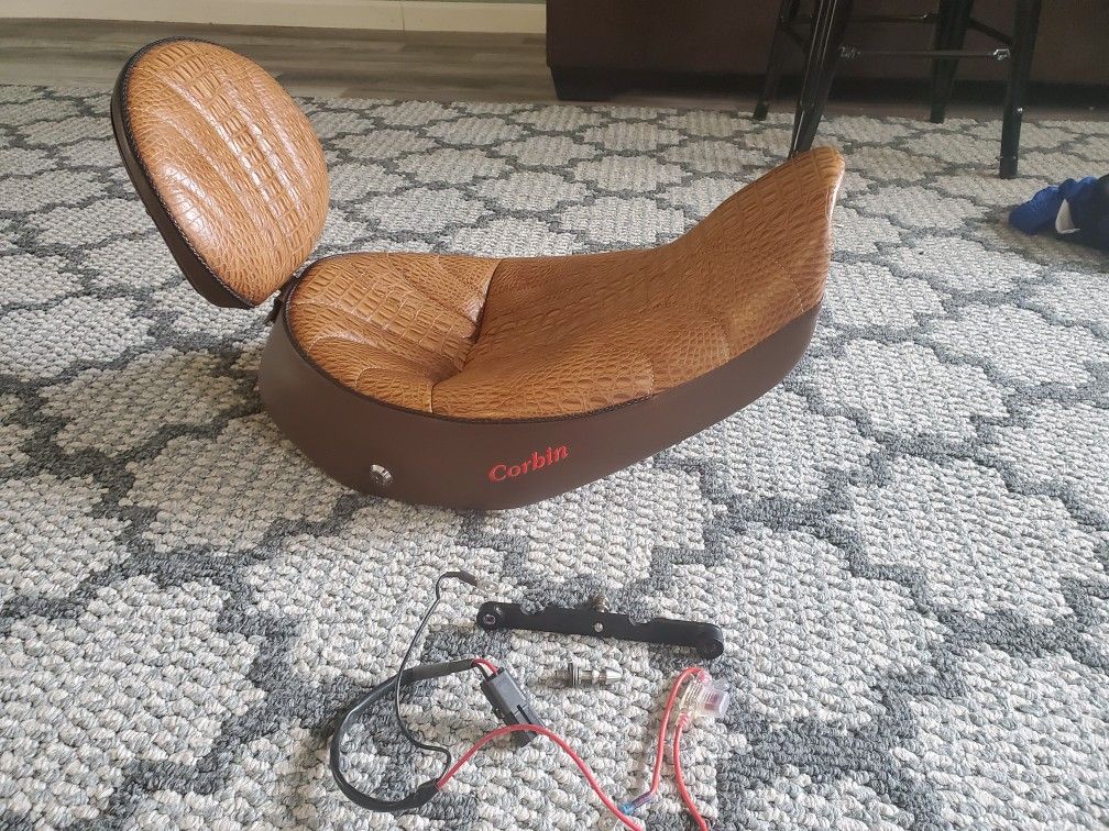 Just bought bike had to get bigger seat for me and the wife. corbin don't have same alligator material to make a matching buddy seat. seat works great,looks new truly a nice seat interested send me a text at 8 one 0 9 six 9 5 three 1 seven may do partial trade what you got need it gone