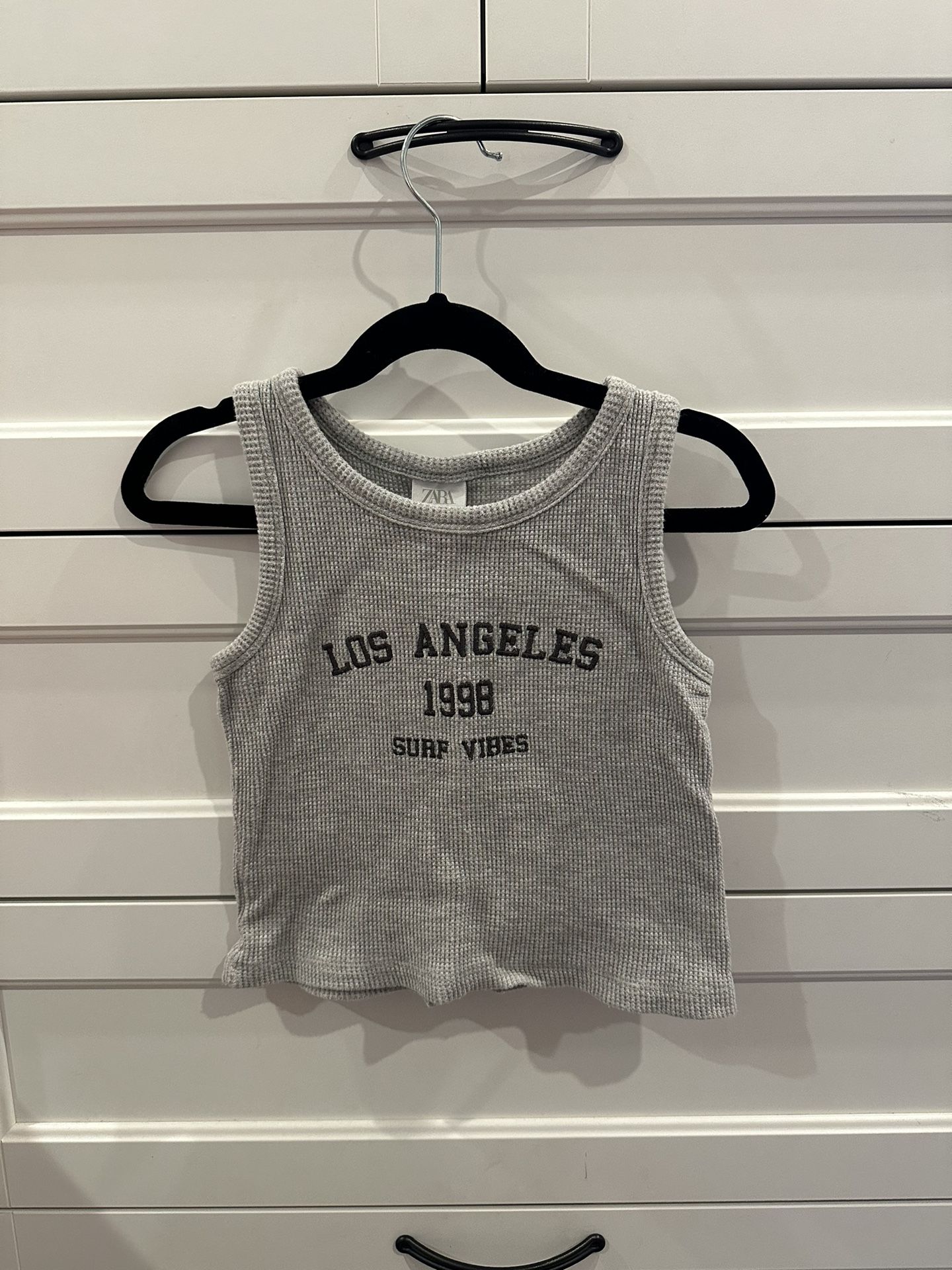 Los Angeles Tank top, stylish to wear outdoors with practically anything! It does run small plus it’s supposed to be like a semi crop top so I am listing it under size 6