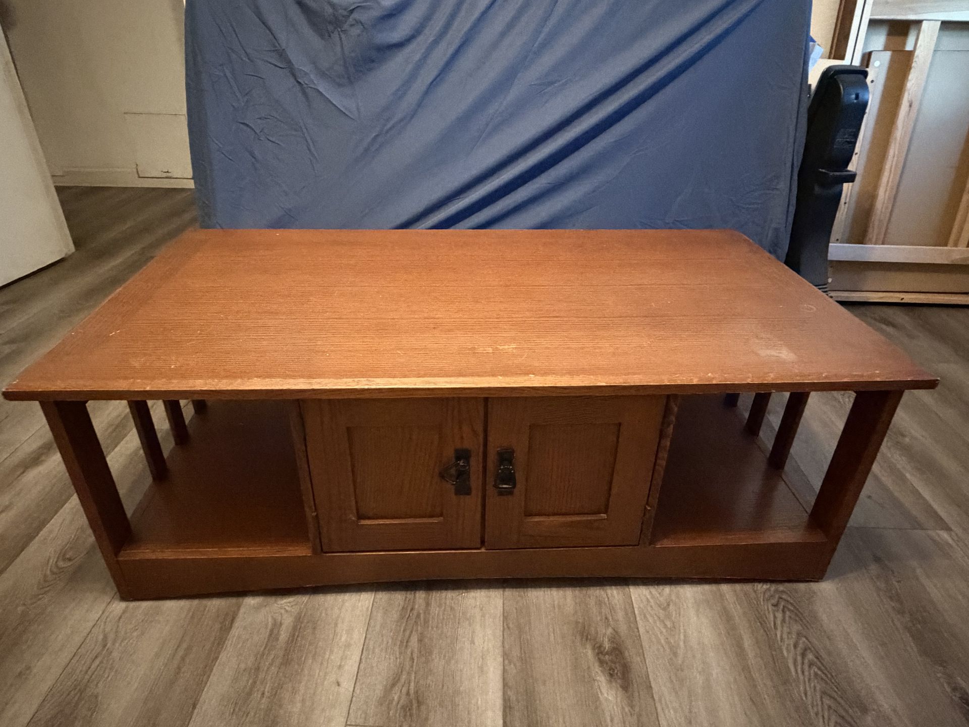 28” by 52” 18” tall Rectangular coffee table with dbl sided doors