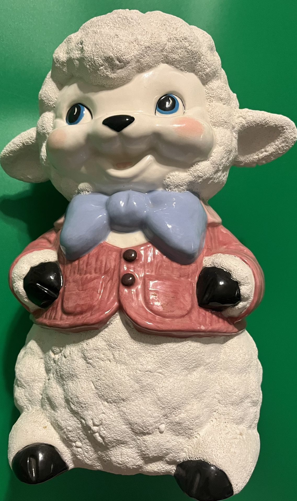 Vintage 11" Ceramic Sheep Lamb Piggy Bank Hand Painted Figural by Alberta’s Molds Inc 1967