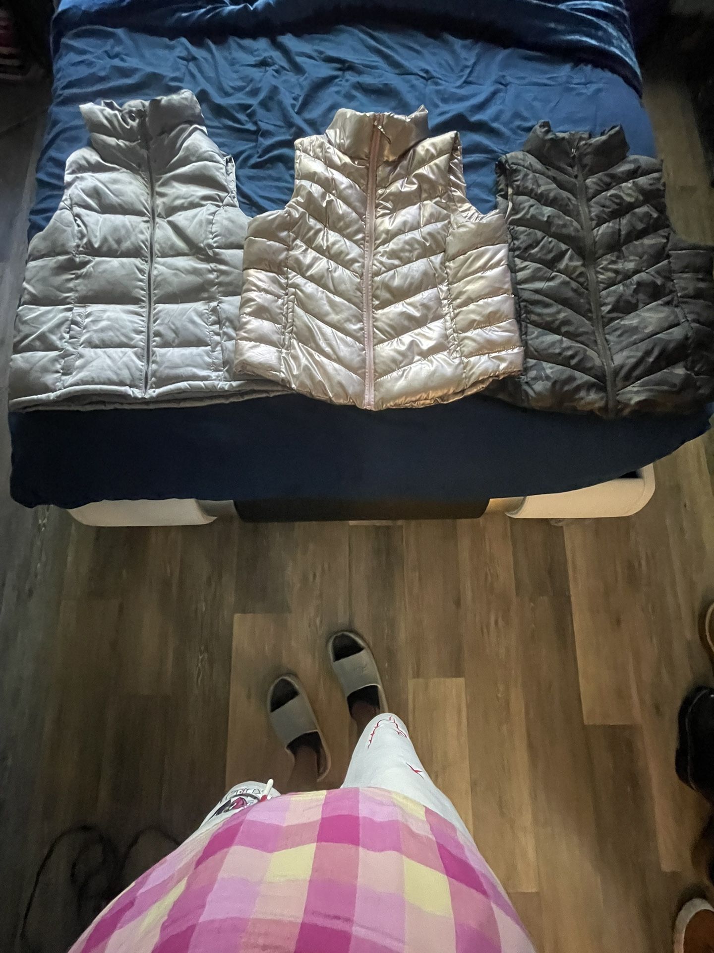 Used Grey size Large, pink & arm, fatigue are size X-Large any good condition I just can’t fit anymore