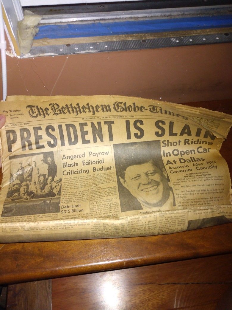 Newspaper from the 1960s when former president John F Kennedy was assassinated