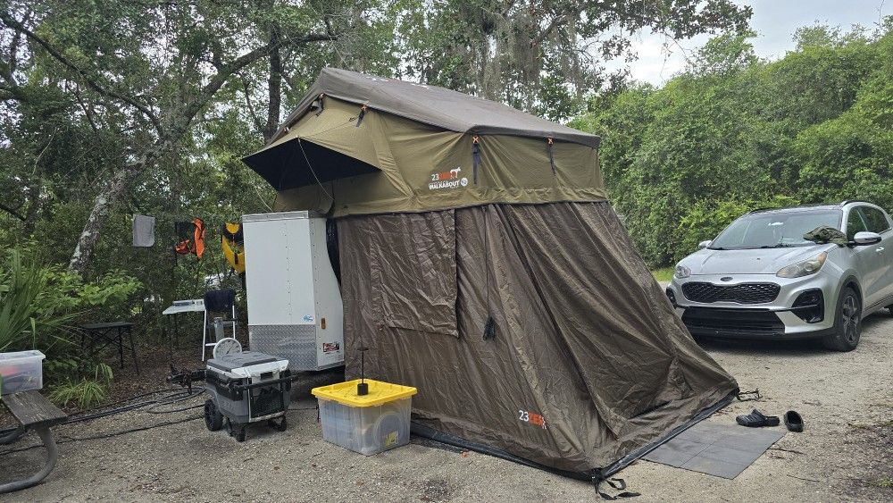 I am selling the Rood Top Tent for 4 people plus the Annex (23zero 62) and the enclosed trailer 4x6. Just hook up to your car and go camping. Tent sell separately too.. ($1100, Tent has a annex too)