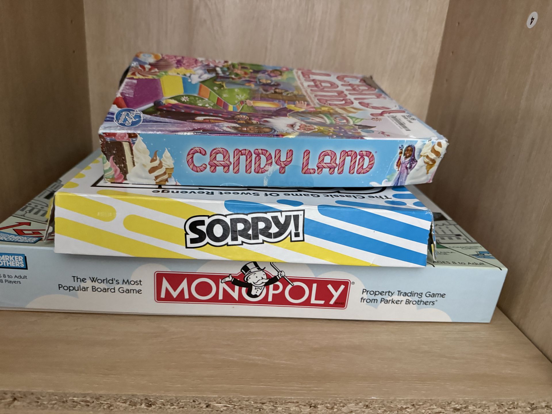 Can't promise all peices are there hince why it's $5 for all 3, maybe some cards or pieces missing maybe board is in half(ves) but still functional overall in playing like placing it together. Monopoly candy land and sorry. Porch pick up zelle or cash only.
