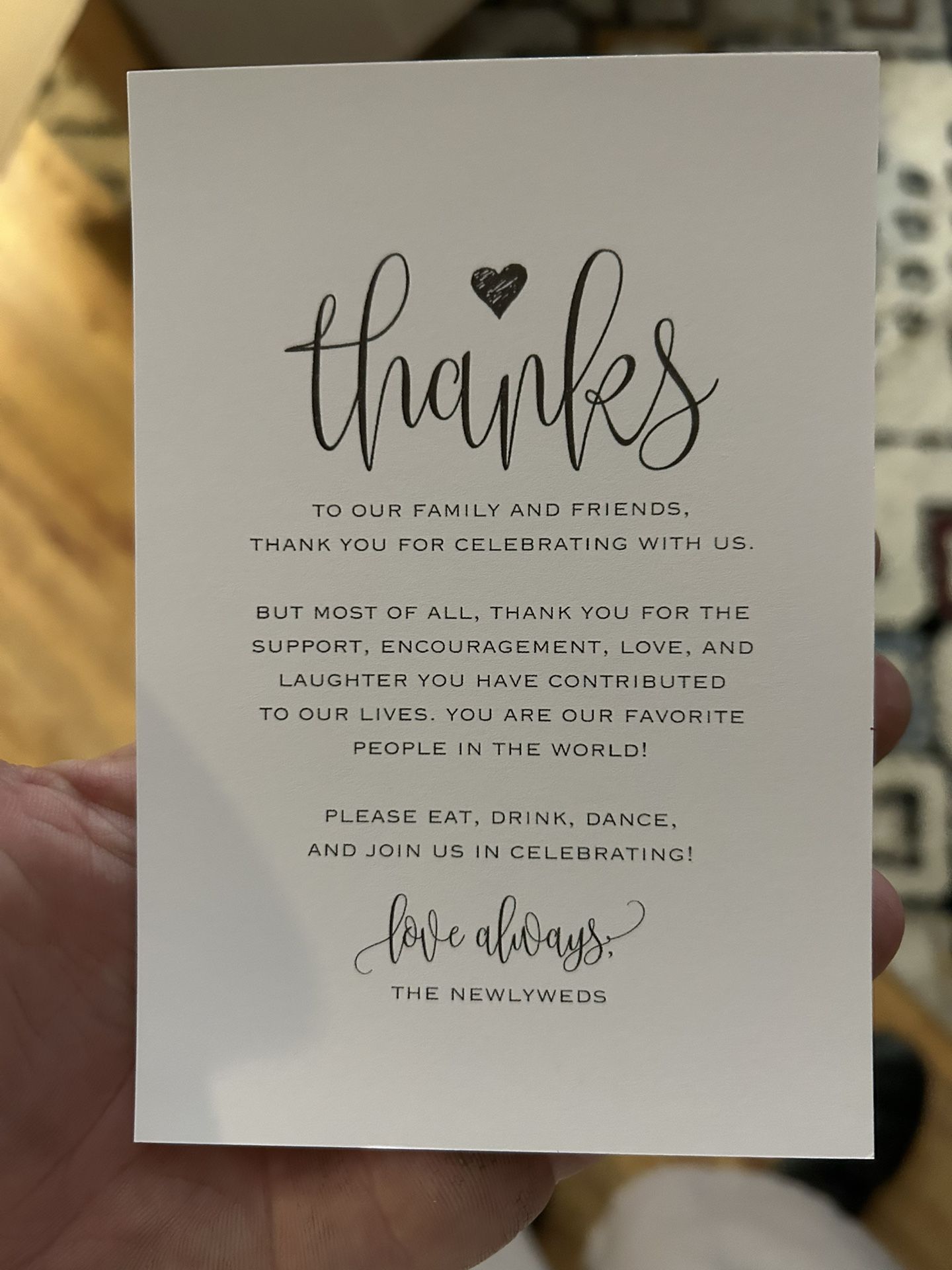 Thank you cards to be placed on guest tables. There are 25 of them