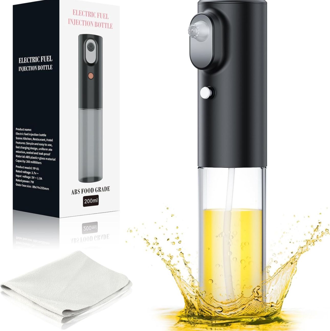 Oil Sprayer for Cooking - Electric Olive Oil Sprayer - 200ml Glass Oil Sprayer - Chargeable Oil Mister - Fine Mist Portable Oil Dispenser Bottle for Kitchen, Air Frye, Baking, Salad, BBQ
