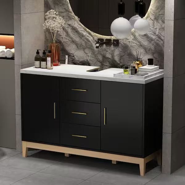 Bath Vanity Cabinet without Top in Black with 3-Drawer and 2-Door Cabinets $150