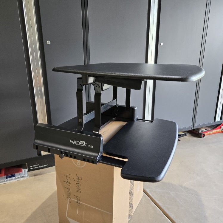 Selling used varidesk. Fully functional. Raises up so you can stand. Keyboard extends. There is some cosmetic damage. Please see pictures