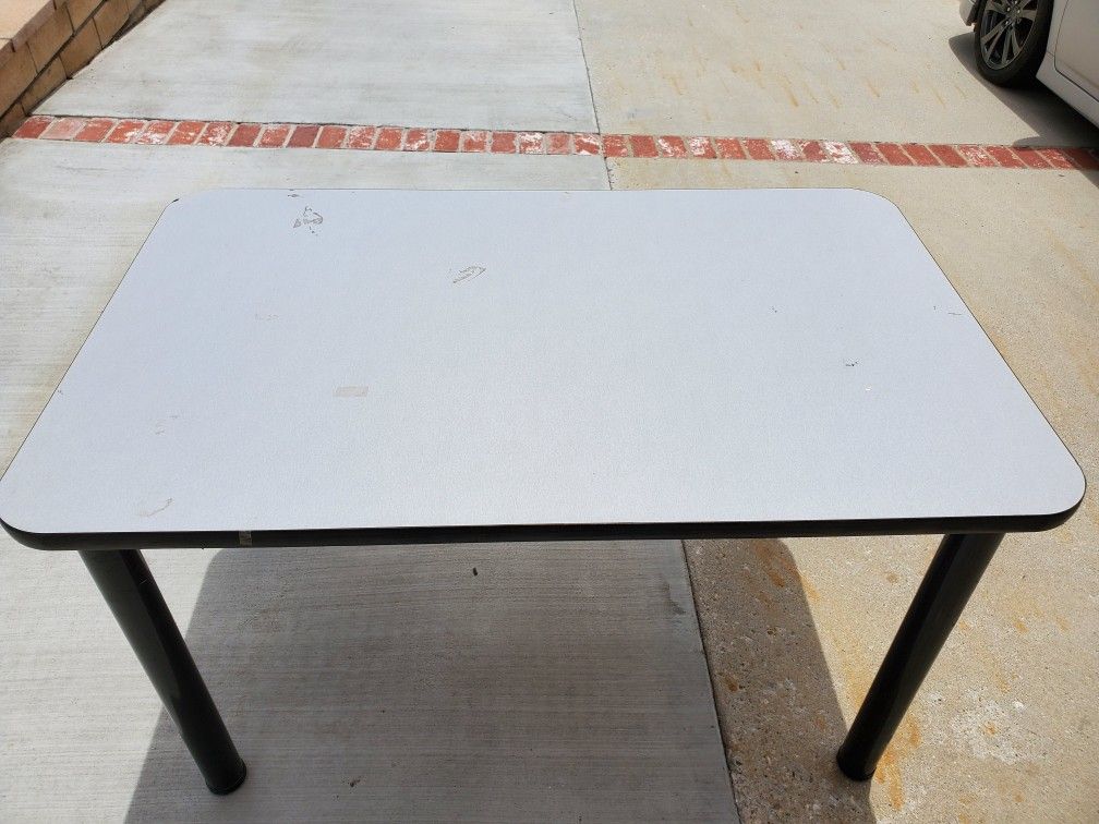 Sturdy, Heavy and Strong Table. Metal Removable Legs. Great for Outdoor, workshops or regular home office use. Measurements: 30 X 48