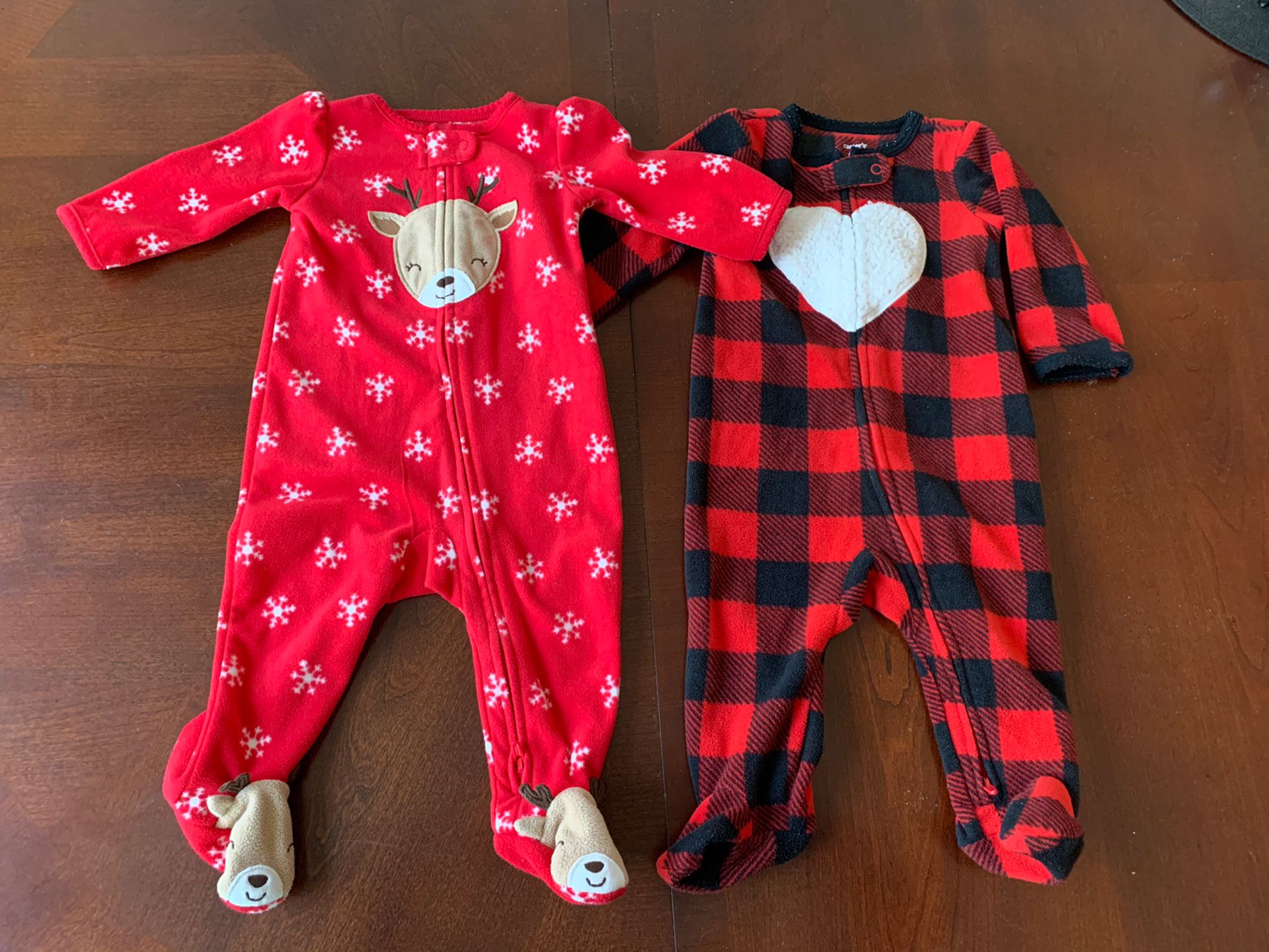 Good condition. No flaws stains or smells. christmas baby girl pajamas size 6 months just one you and carters