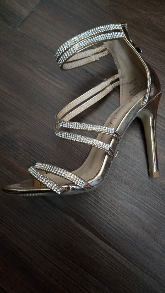 New Lauren Lorraine womens high heels shoes size 5 1/2 or 5.5 size Rosegold with diamonds.