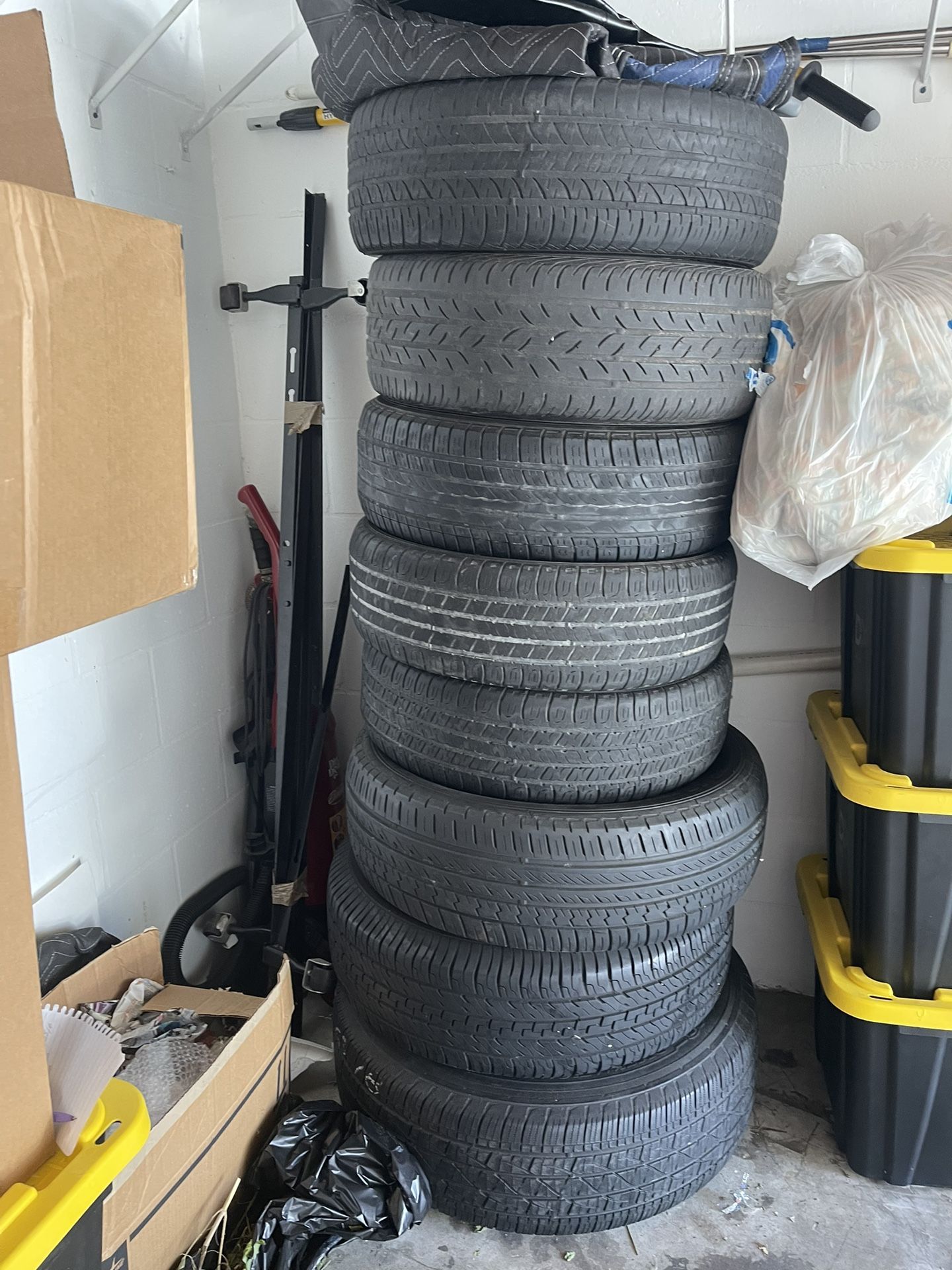 9 Tires Total , 4 -205/60/16, 1- 235/66/18with Rims For Chevy Traverse ,1 - 235/70/16 With Rim For Honda Pilot , 2 - 215/55/16 , 1 215/60/16, -