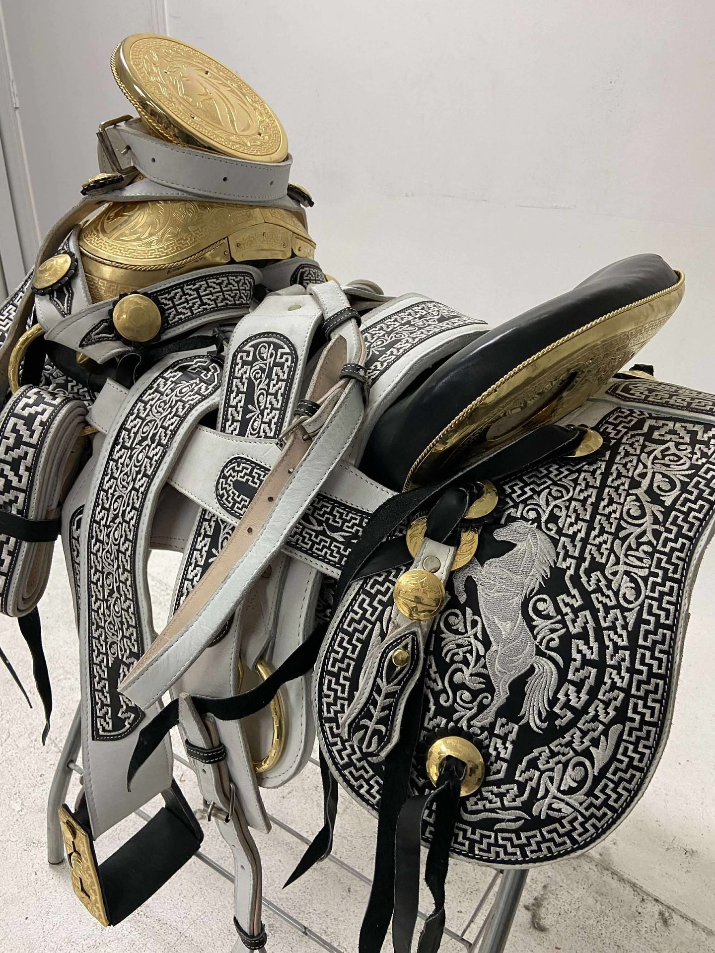 Nuevas monturas charras bordadas con todo el Herrage,los estribos y el fuste chapeado en Oro