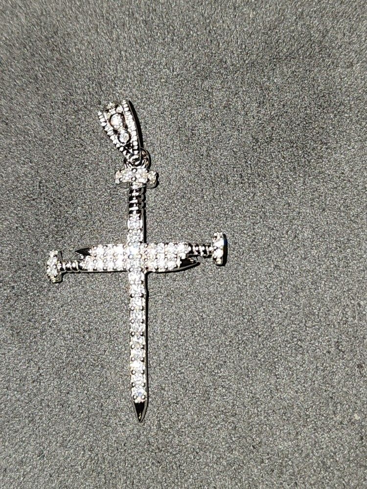 Sterling silver nail cross iced out resembles a Cartier nail cross