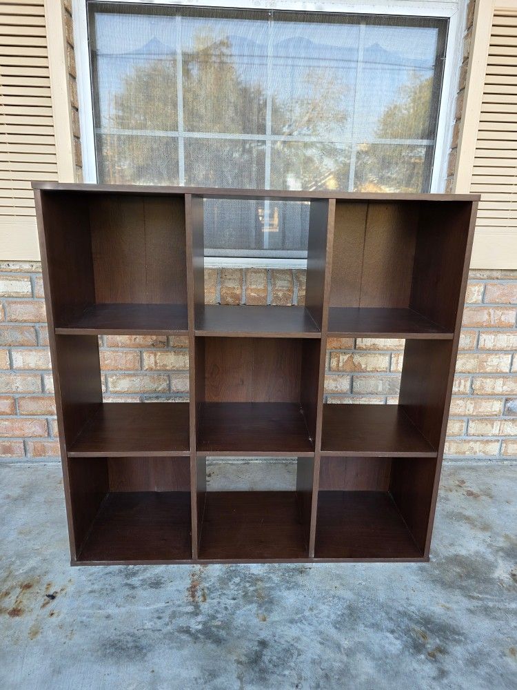 9 Cube Wood Storage Organizer Book Cubeicals Shelf Dark Brown/Walnut Finish 36 H x 12W x 36.5 H Good Condition Please see pics. ***PICKERS PARADISE*** Check out our other listings!!! Pick up on Bonnabel Blvd Metairie LA Or Local Delivery Available. (Cash Venmo or Paypal Preferred)