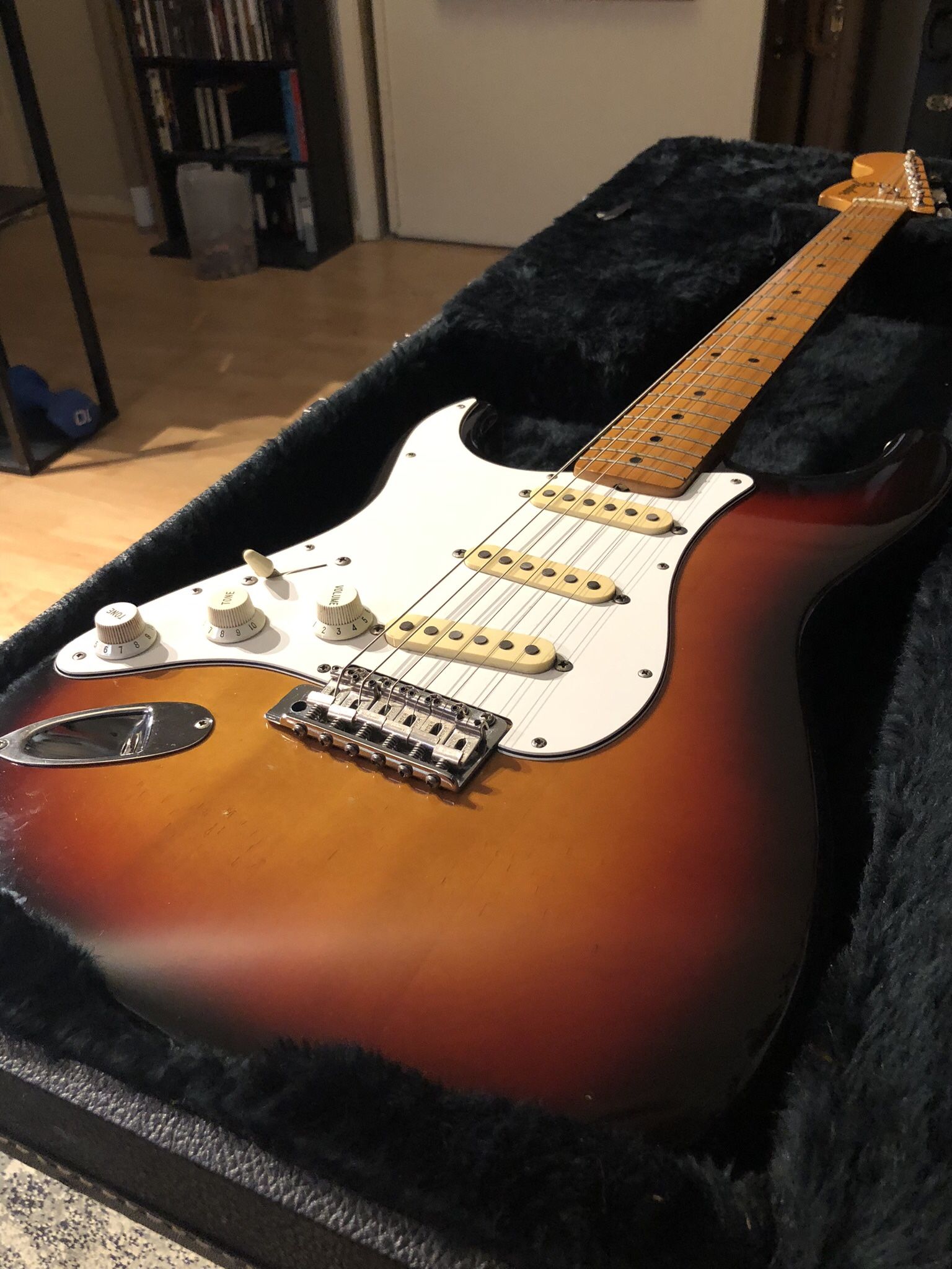Great show for an all original MIJ 68 RI from 84. Incredible neck and very vintage.. case available. 850.00