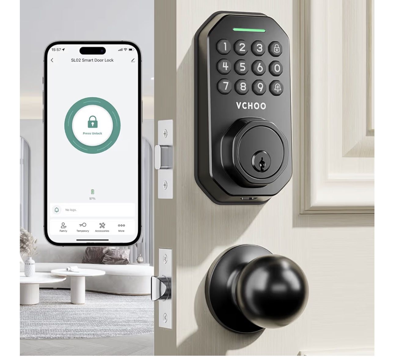 VCHOO Keyless Entry Door Lock with Handle, App Control Door Locks for Front Door, Auto Lock Keypad Door Lock with Handle, Smart Door Lock for Home Hot
