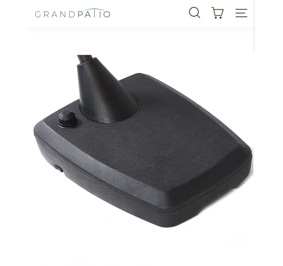 Grand patio…brand OFFSET UMBRELLA BASE ONLY Cross members and wheels are not included. See pictures and you can look up specifications online Located near Dadeland mall. New in the box.