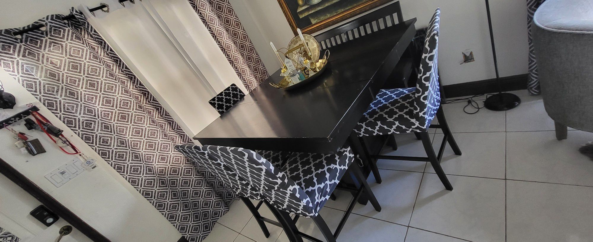 High Top Table With 4 Chairs With Covers, Bench is FREE