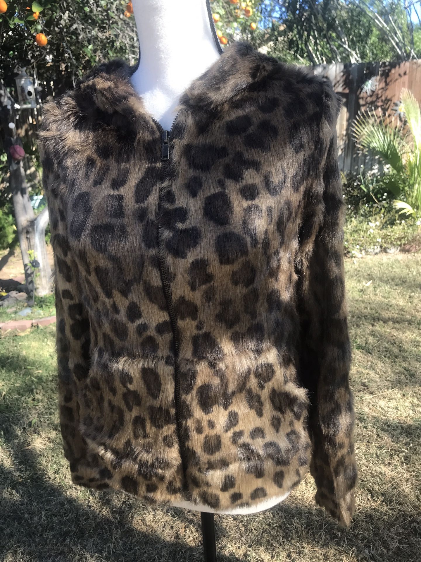 Joe’s Zip Front Animal-print “Fur” Hoodie, Stretchy but fitted, Size S,Brown/Beige , Front Patch Pockets, Pile: 100% Modacrylic; Backing: 45% Acrylic, 55% Nylon, Sumptuous feel, $10, For Pick Up Only