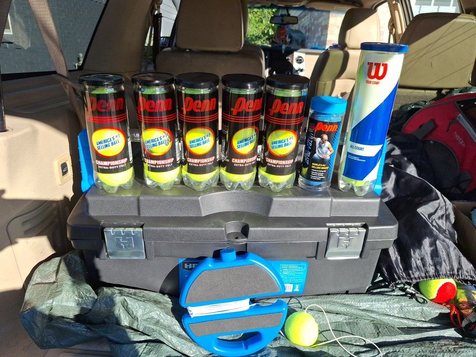 I have 7 containers of brand new tennis ๐พ balls. And one container of blue racket balls. And I have a tennis trainer. Make me an offer for all. Tennis trainer cost $18.99 by itself. Asking $30 for everything... OBO.