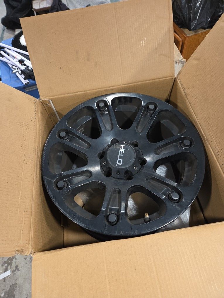 Selling 4 set of used black Helo rims in good condition. They came off a GMC Sierra 1500. Bolt Pattern: 6x5.5 (6x139.7mm) Finish: Black Condition: Used – normal wear, no major damage