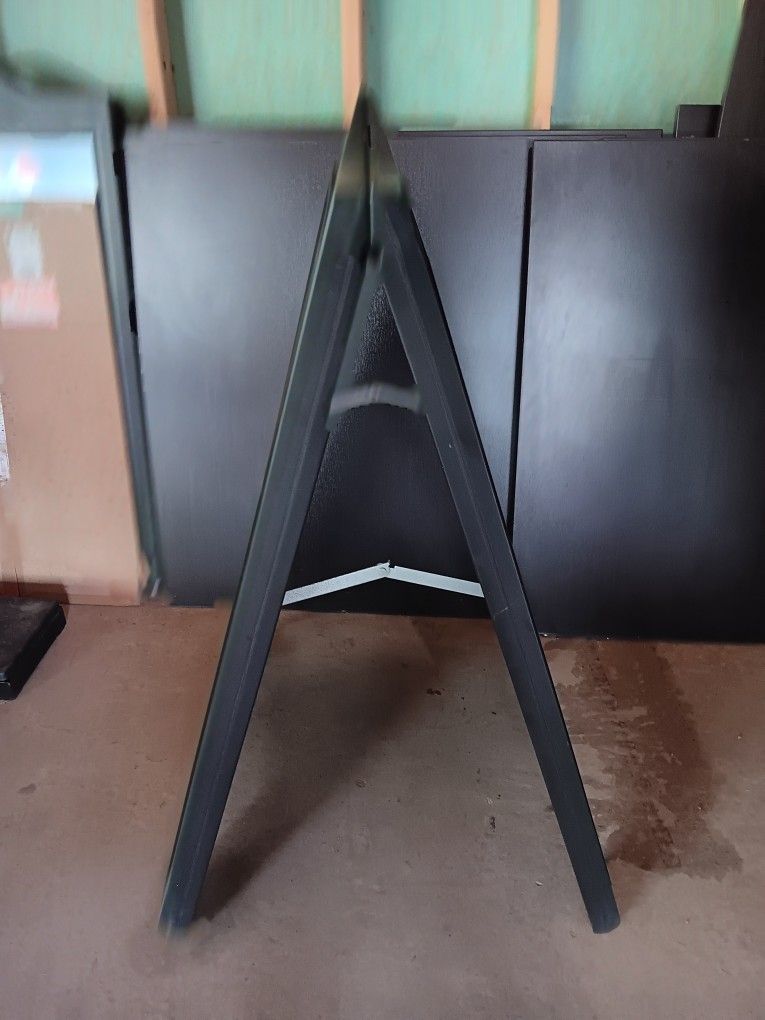 A frame holder for 24 in x 36 in signs, double sided with wheels for easy moving. Lightly used. Great for sidewalk business promotion.