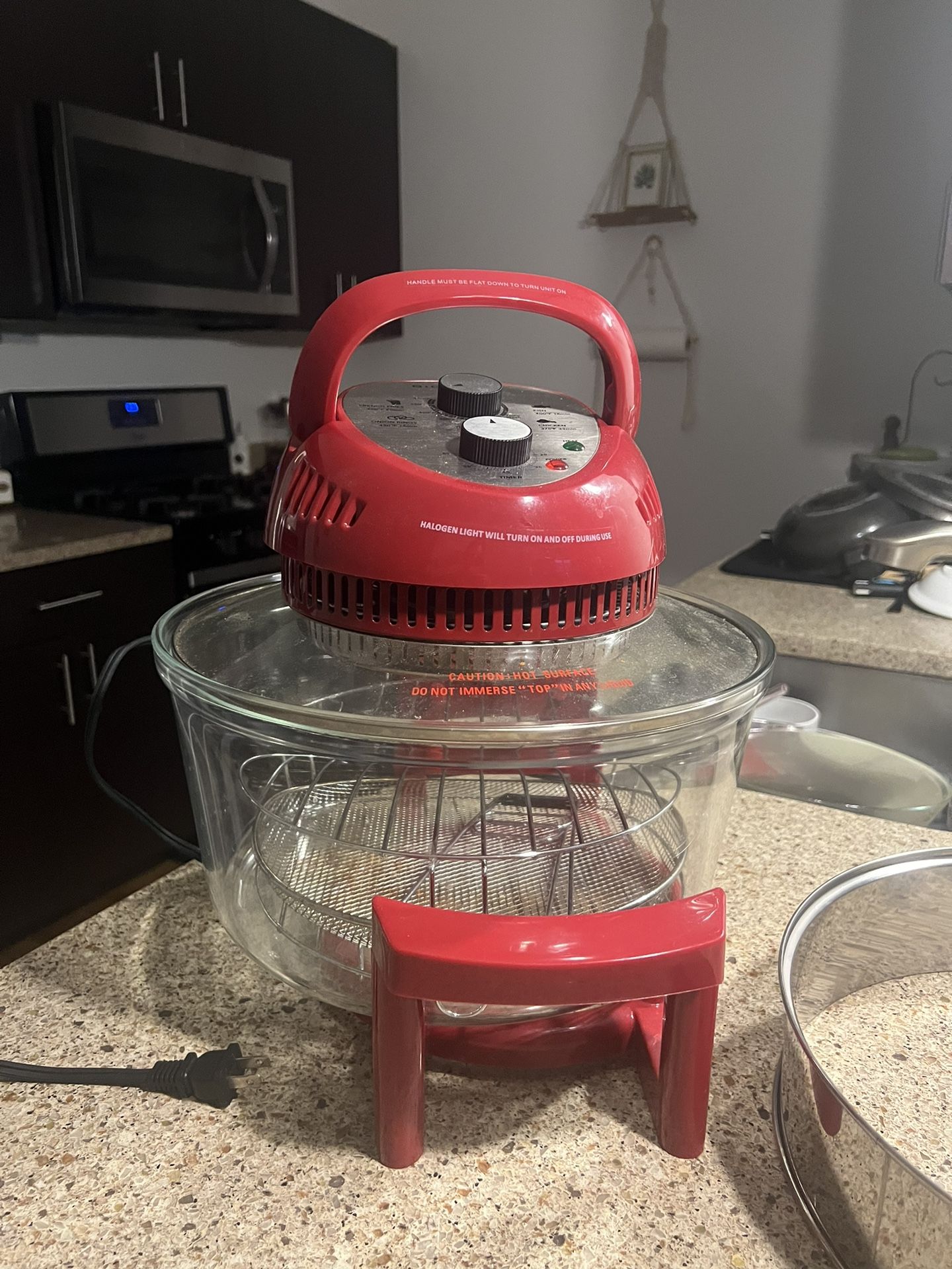 Really huge air fryer. With an extender. Cooks a whole turkey. Used like 5 times. Selling because need a smaller one.