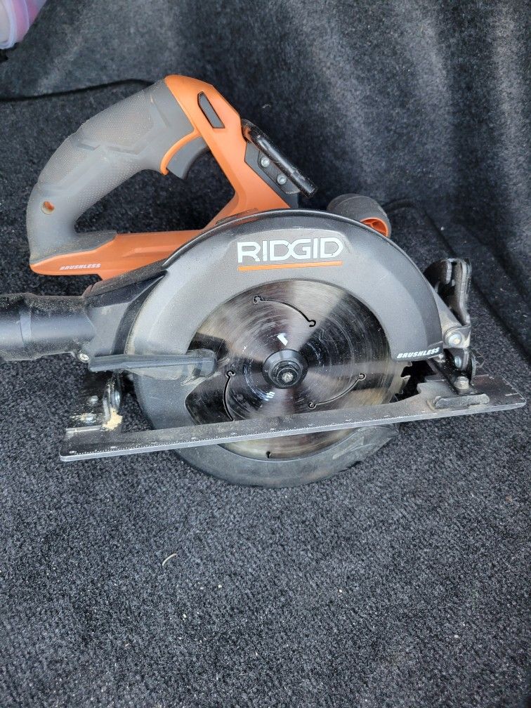 (Used for 3 months)Rigid 18v brushless 7 1/4 inch circular saw Dimensions: H 9.13 in, W 8.98 in, D 15.32 in Dimensions Blade Diameter (in.) 7-1/4 in Product Depth (in.) 15.32 in Product Height (in.) 9.13 in Product Width (in.) 8.98 in Details Battery Amp Hours No Battery Battery Power Type Lithium Ion Battery Size 18-volt Bevel Capacity (degrees) 56 ° Blade Location Right Charger Not Included Condition FairlyNew Construction Material Acrylonitrile Butadiene Styrene (ABS) Cordless Tool Type Included Blade Maximum Cut Depth at 45 Degrees (in.) 2.688 in Maximum Cut Depth at 90 Degrees (in.) 2.563 in Maximum Speed (RPM) 5400 RPM Motor Type Brushless Power Tool Features Depth Adjustment,LED Light,Variable Speed Product Weight (lb.) 8.3 lb