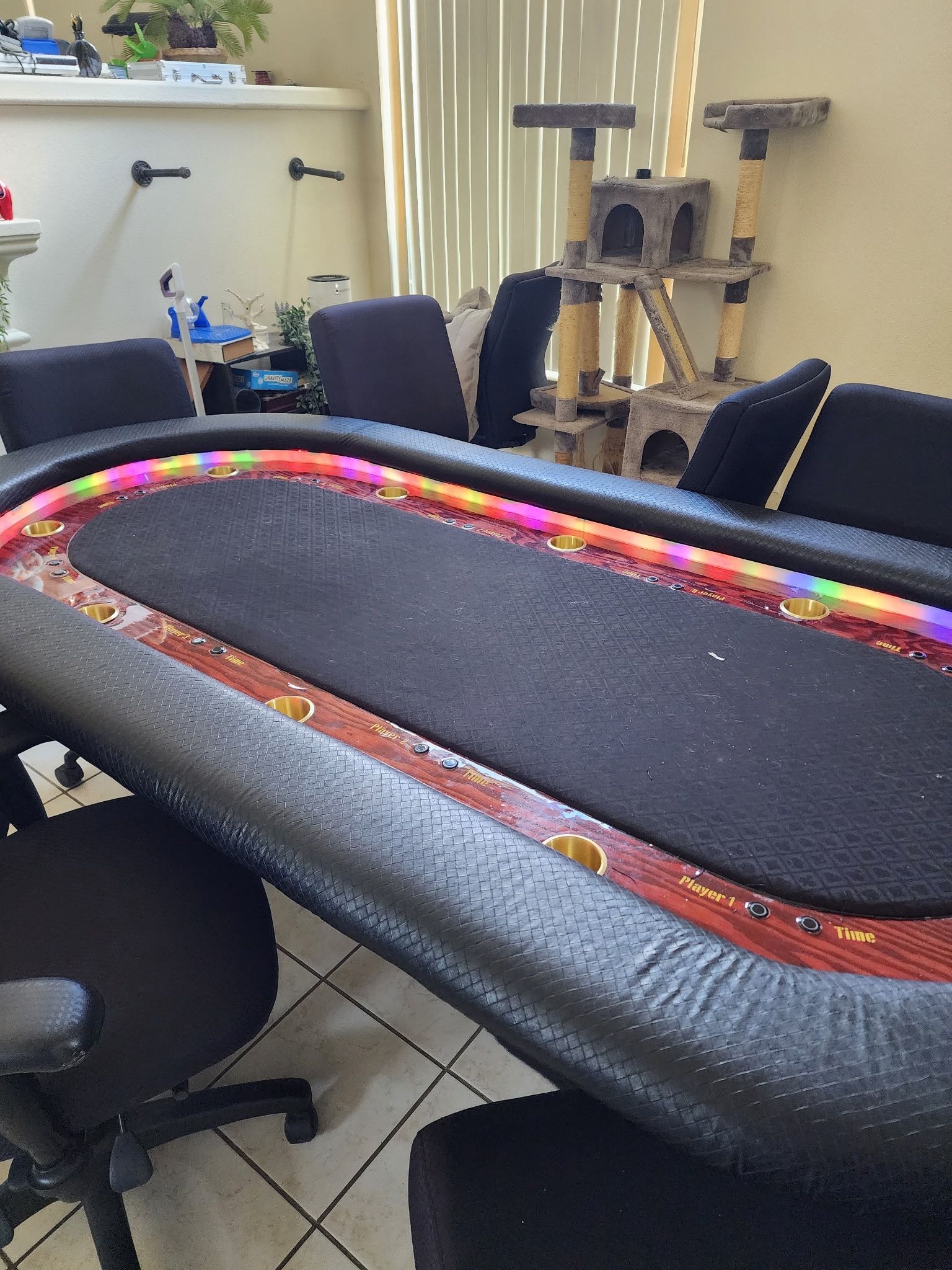 custom built poker table seats 10, built by my fiancé. LEDs are switch activated and buttons are programmable to each player. Have to sell due to moving out of state. Pick up by 1/5/26