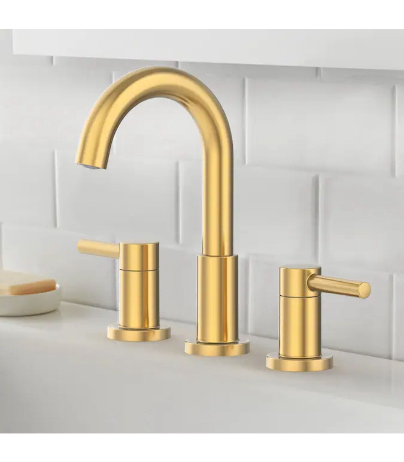 allen + roth Harlow Brushed Gold Widespread 2-handle WaterSense Mid-arc Residential Handle Bathroom Sink Faucet with Drain