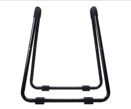 MaterialAlloy Steel ColorBlack Product Dimensions34"L x 32"W x 38"H Handle TypeFixed Maximum Weight Recommendation661.4 Pounds Dip bar for at-home fitness; great for tricep dips, knee raises, leg raises, back rows, and other exercises Foam slip-free grips for a safe, comfortable hold; foam floor pads for reliable stay-in-place performance Can be used with push-up rings or straps (not included) 661-pound weight capacity; made of durable steel; easy assembly; lightweight and portable Measures 34.25 by 32.5 by 38.4 inches BRAND NEW IN BOX
