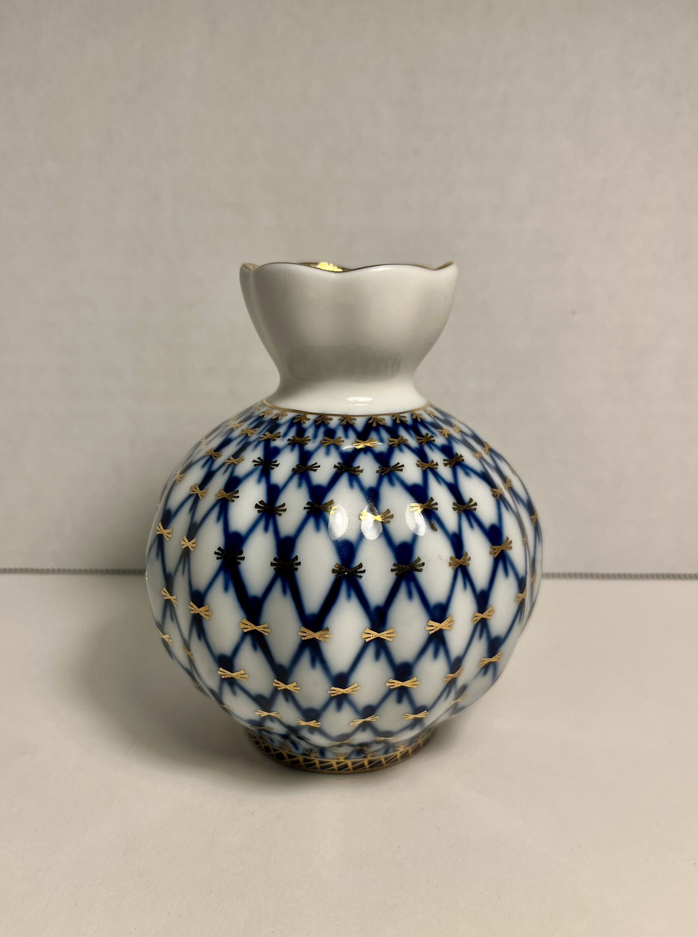 Russian Federation Lomonosov Porcelain Cobalt Blue 22K Gold Bud Flower Vase Aprox. dimensions: 4.5"H x 4" diameter Very good original condition! No chips or cracks!