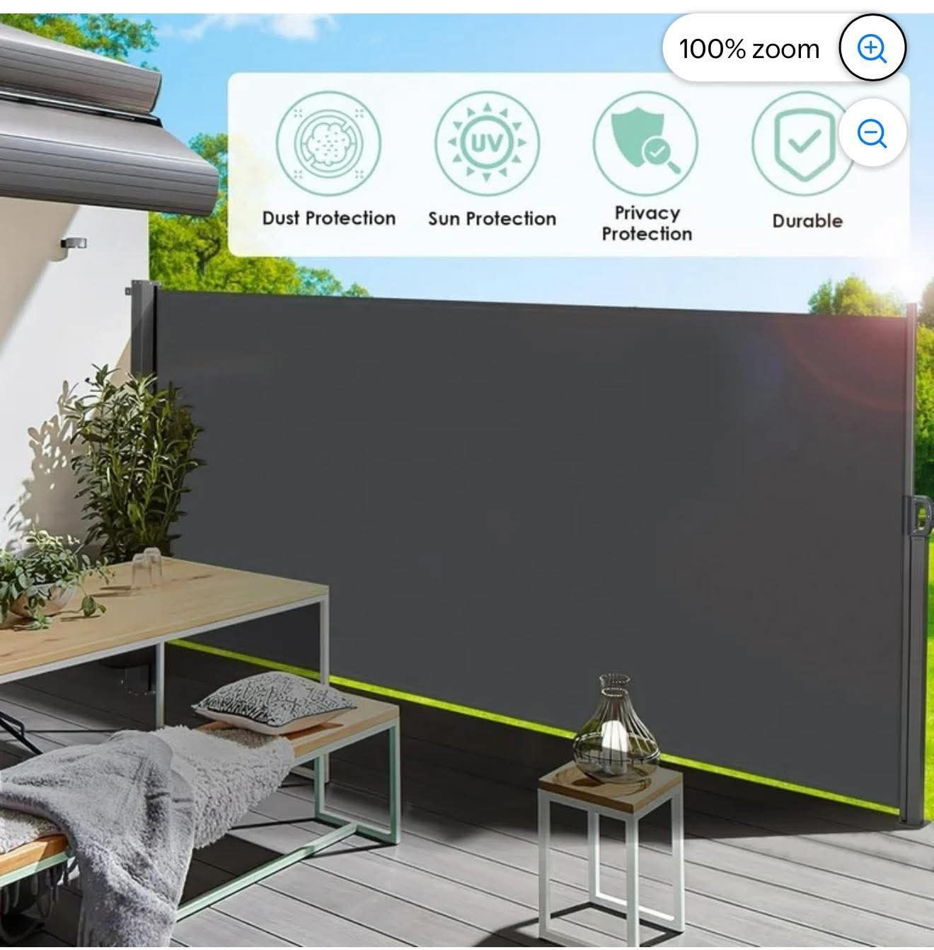 157.5" x 71" Side Awning, Patio Retractable Side Screen Awning, Patio Privacy Screen W-23