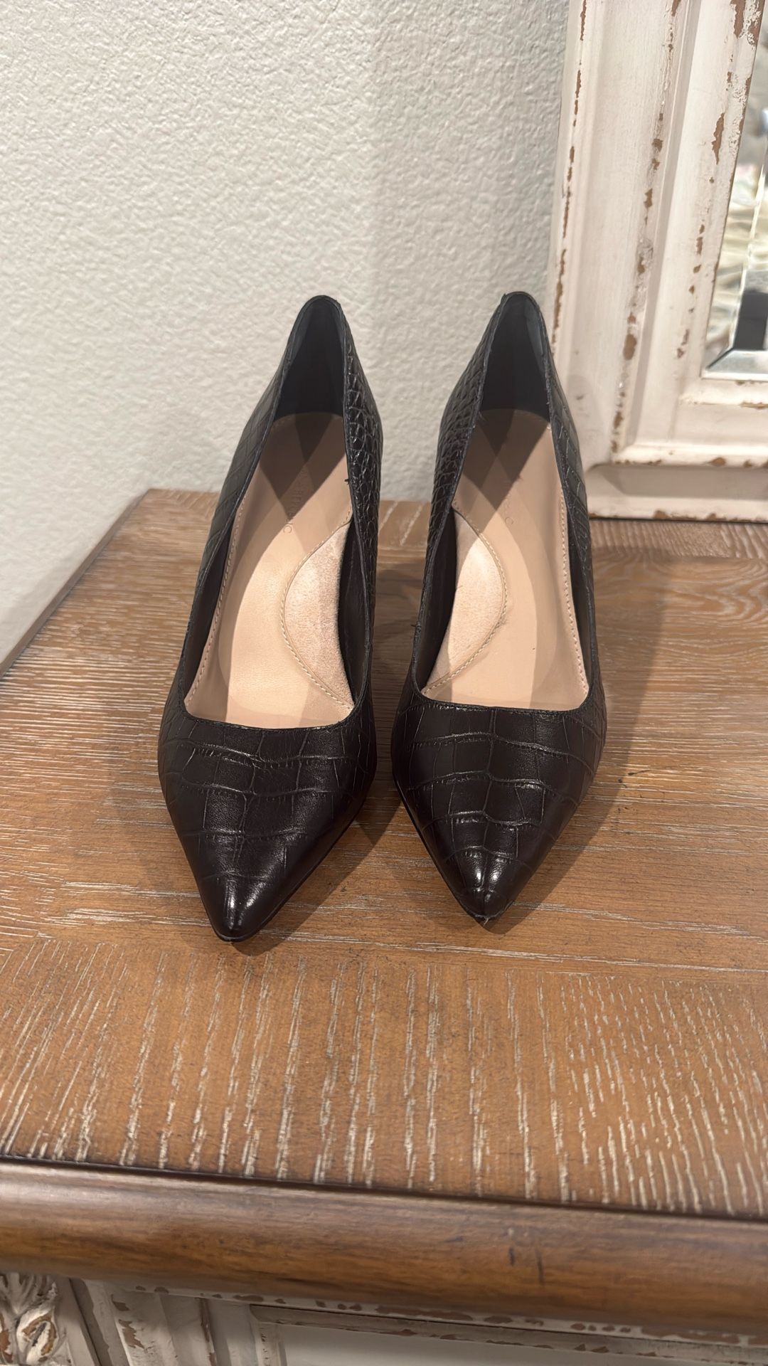 Black Croc-embossed leather Madison heels. Size 7