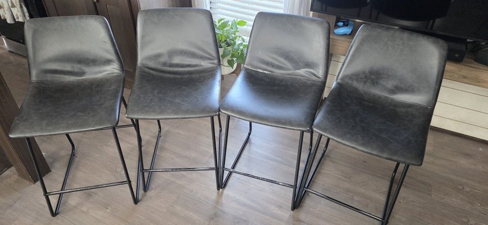 Selling a set of 4 modern industrial style barstools. Grey faux leather bucket seats with black metal sled legs. Very comfortable and sturdy.