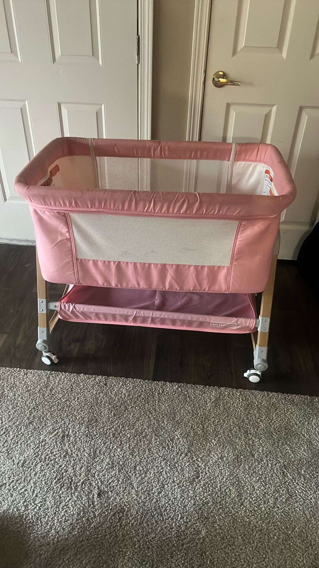 Pink Portable Baby Girl Crib / Bassinet With Diaper Changing Table