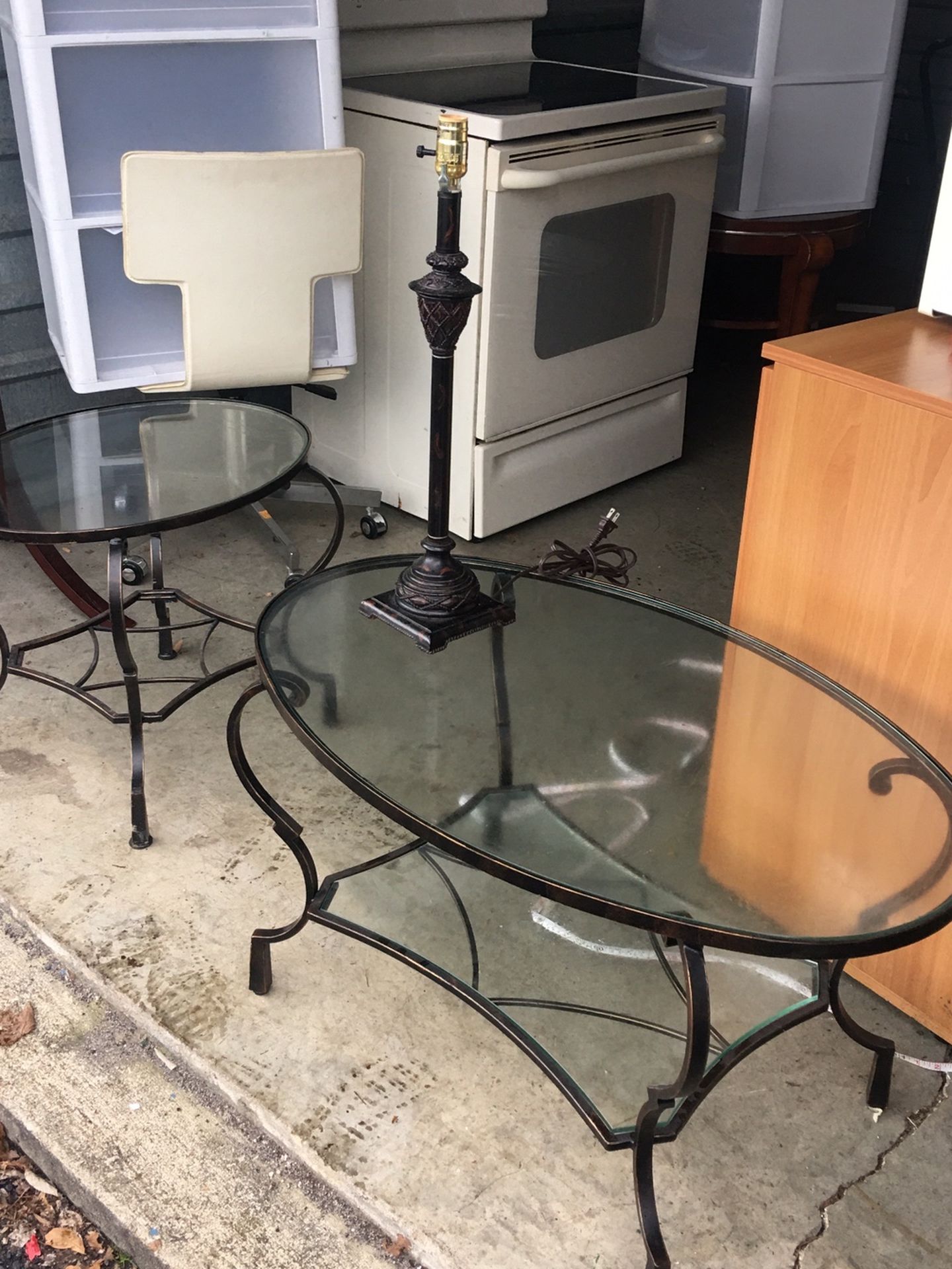 Glass top Coffee and end table (36w x22x20t and 24l x 18w x21t)