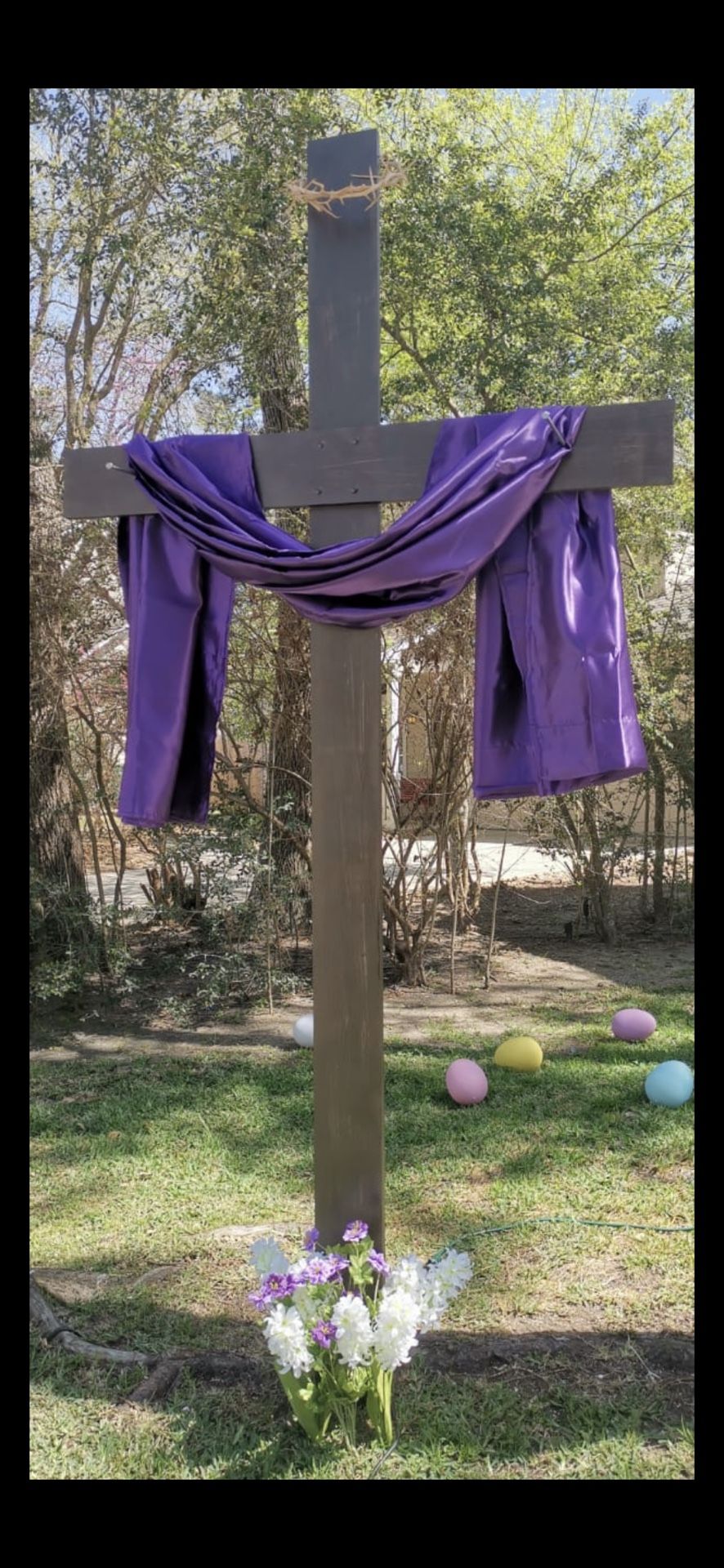 Easter Cross Hand Made, crown of thorns Included With Purple Cloth And The artificial Flowers