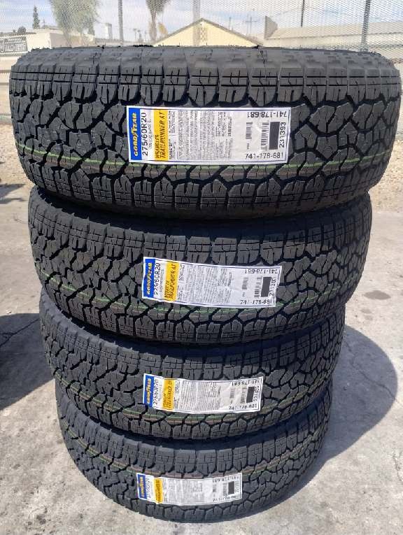 Tires New Goodyear Wrangler Trailrunner AT 275 60R20 $780 set of four install mount and balance financial services available no credit need