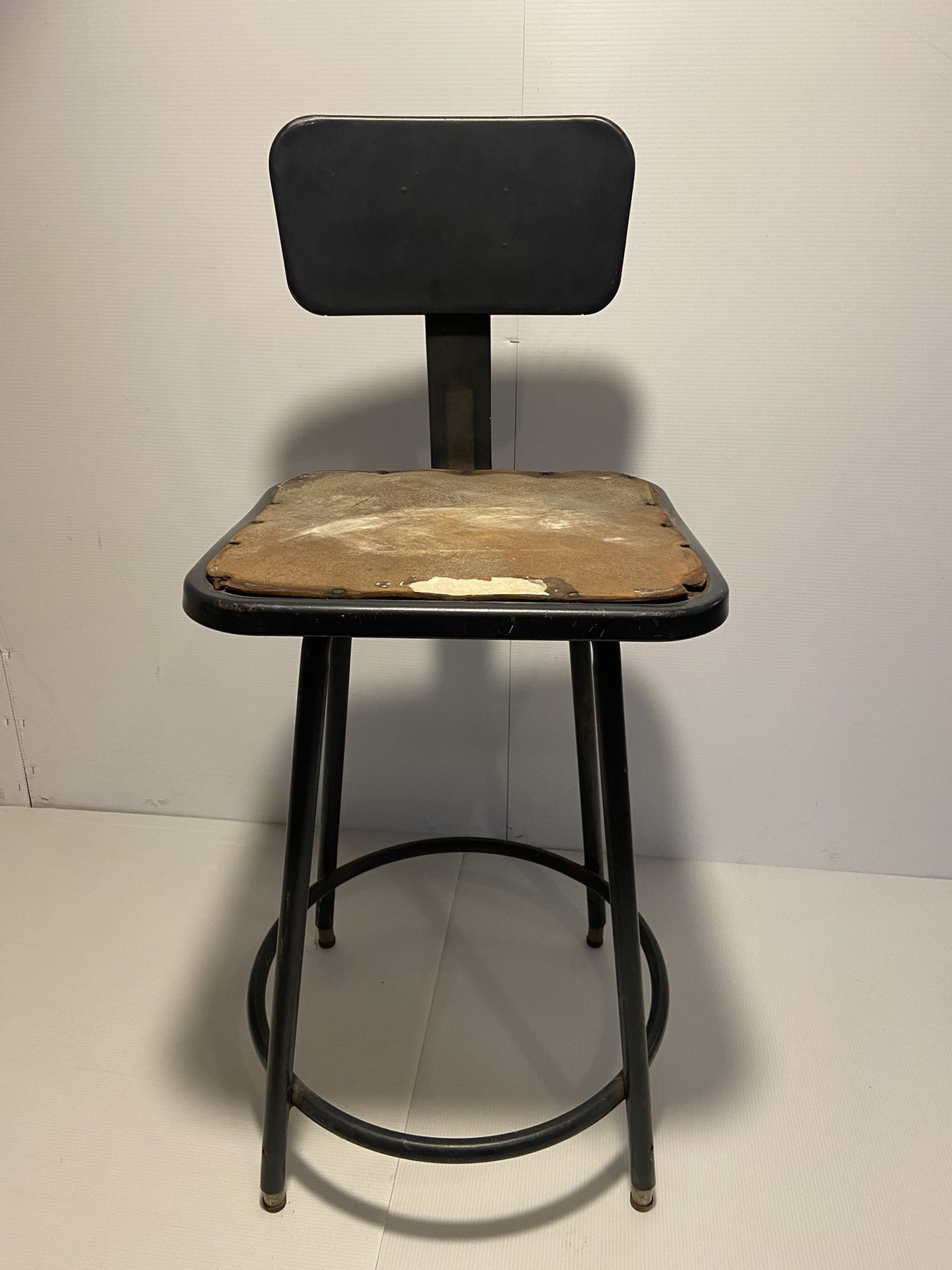 Seat height 24” back rest 36” and it adjusts Seat is 15”x15” industrial has wear and tear the seat can use a paint job or cushion