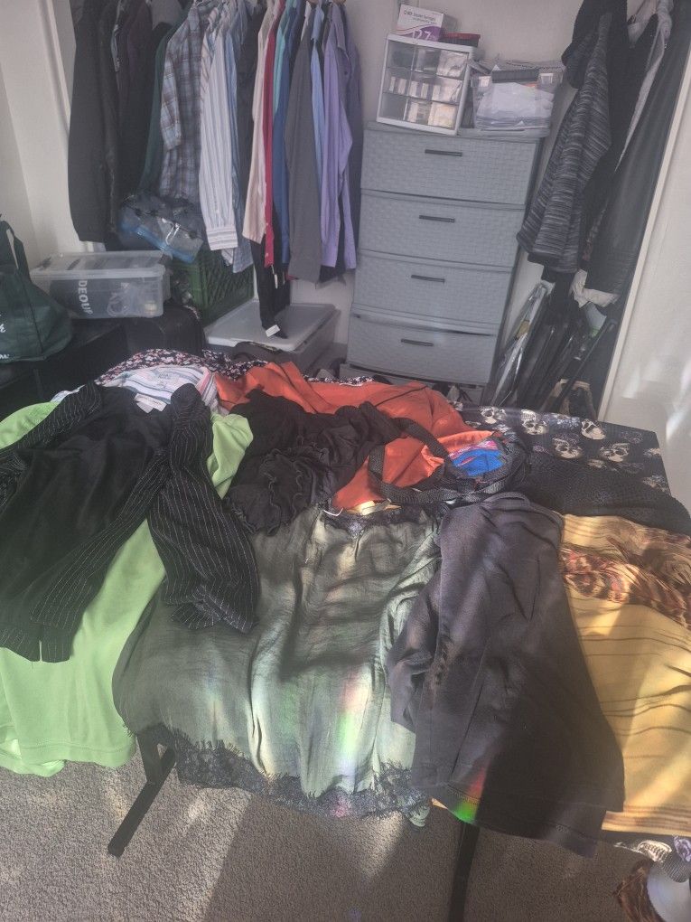 Mix of large to 2 xl Clothing two or three men's shirts mostly women's l and xl