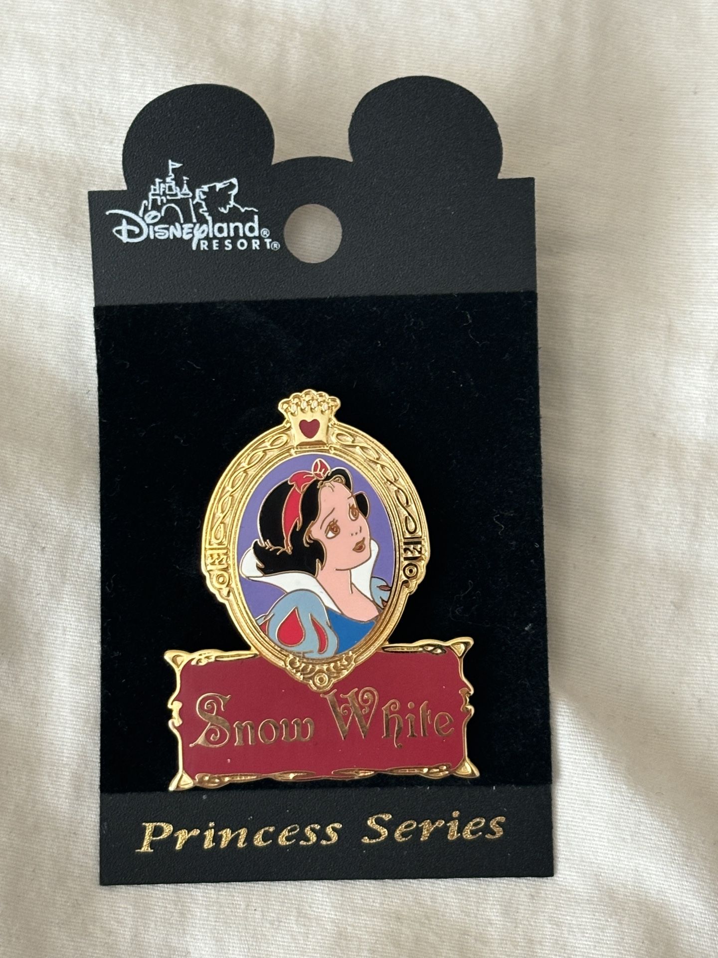 Princess portrait series disney pin: Snow White (2001) This pin is highly scrapped (counterfeit) on Ebay. This is authentic on it’s original back card and GORGEOUS!!!!!