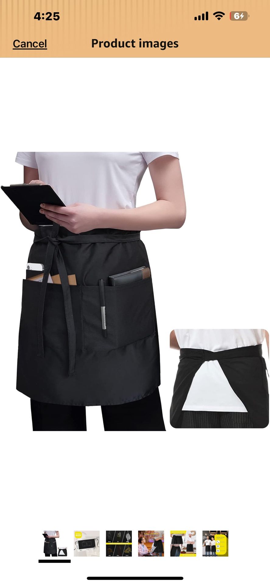 Server Apron Black with 3 Pockets 18 Inch Long Waiter Waitress Bistro Half Waist Aprons for Women Men Waterproof